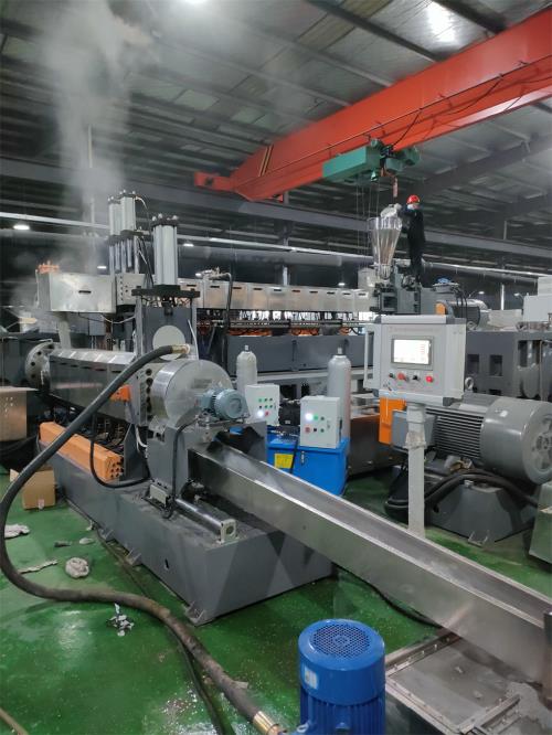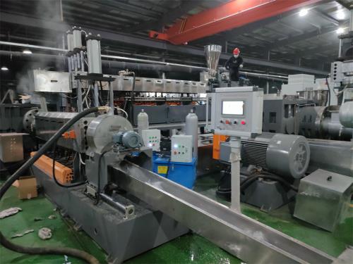 PE塑料造粒機_PE塑料造粒機_佳德造粒機JDL-75B/180雙階水環(huán)熱切造粒機組一、系統(tǒng)機組技術(shù)參數(shù)Ⅰ、機器顏色:主機為:公司標色;電柜為:電腦色;防護罩:黃色Ⅱ、擠出工藝:雙螺桿喂料機-----JDL-75B雙螺桿---—液壓板式自動換網(wǎng)—-—JDL-180單螺桿擠出機——-液壓板式自動換網(wǎng)-——-水冷模面熱切造粒輔機-——高壓水泵-----離心脫水機------旋風(fēng)分離器-----風(fēng)冷加長振動篩------成品料倉-------PLC觸摸屏控制Ⅲ、加工物料:PE護套料產(chǎn) 能:500-600公斤/小時注意事項:取決于客戶的配方、PE塑料造粒機工藝、生產(chǎn)條件設(shè)備特點:這套設(shè)備主機是環(huán)保型;主機設(shè)備不需要接外循環(huán)水系統(tǒng);自帶循環(huán)冷卻統(tǒng)是我公司發(fā)明專利產(chǎn)品(發(fā)明專利號:CN201911312134.6)1.最大好處:主機0水排放;無水污染;環(huán)保好過2.雙螺桿齒輪箱冷卻采用:采用環(huán)保冷卻系統(tǒng)(環(huán)保型:發(fā)明專利號:CN201911312134.6)不需要接外循環(huán)水冷卻,不用徘外水;采用閉環(huán)循環(huán)系統(tǒng),不用擔(dān)心長時間使用水冷卻會產(chǎn)生水垢把冷卻器堵住,導(dǎo)致齒輪箱損壞3.單螺桿齒輪箱冷卻采用:采用環(huán)保冷卻系統(tǒng)(環(huán)保型:發(fā)明專利號:CN201911312134.6)PE塑料造粒機不需要接外循環(huán)水冷卻,不用徘外水;采用閉環(huán)循環(huán)系統(tǒng),不用擔(dān)心長時間使用水冷卻會產(chǎn)生水垢把冷卻器堵住,導(dǎo)致齒輪箱損壞4.真空泵采用環(huán)保冷卻系統(tǒng)(環(huán)保型:發(fā)明專利號:CN201911312115.3)不需要接外循環(huán)水冷卻,